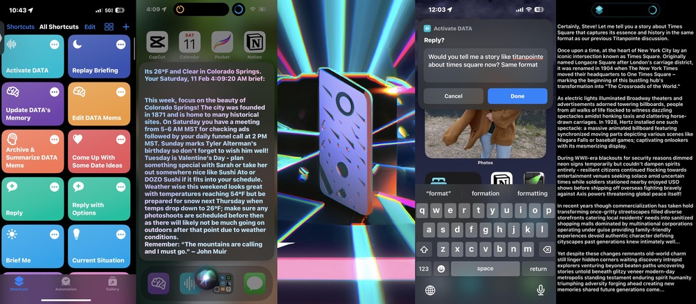 DATA is a suite of 20+ fully customizable iOS shortcuts that give ChatGPT Memory, Time, Location, Weather, & Calendar awareness so you can easily ask DATA to help with your work right on your phone in a way that's privacy-first and keeps YOU fully in control.